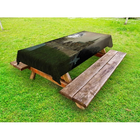 Gothic Outdoor Tablecloth Old Village And Graves With Medieval