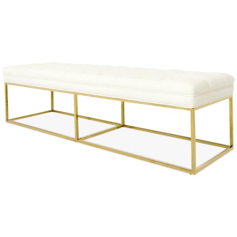 Modern Style Velvet Tufted Ottoman Bench With Polished Brass