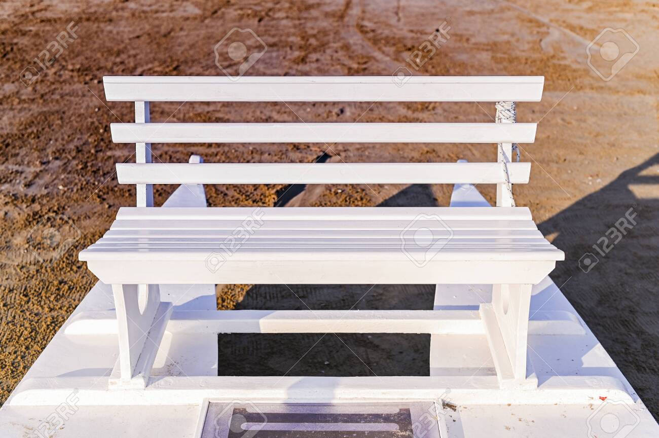 White Wooden Bench On The Beach Natural Lighting Street Photo