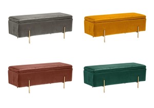 Lpd Lola Velvet Fabric Storage Ottoman Bench Grey Mustard Pink