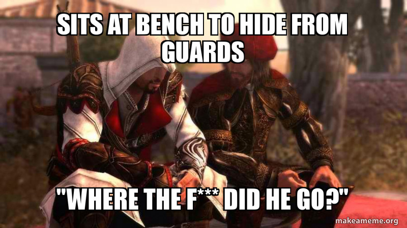 Sit On Bench Become Invisible Assassins Meme Quickmeme