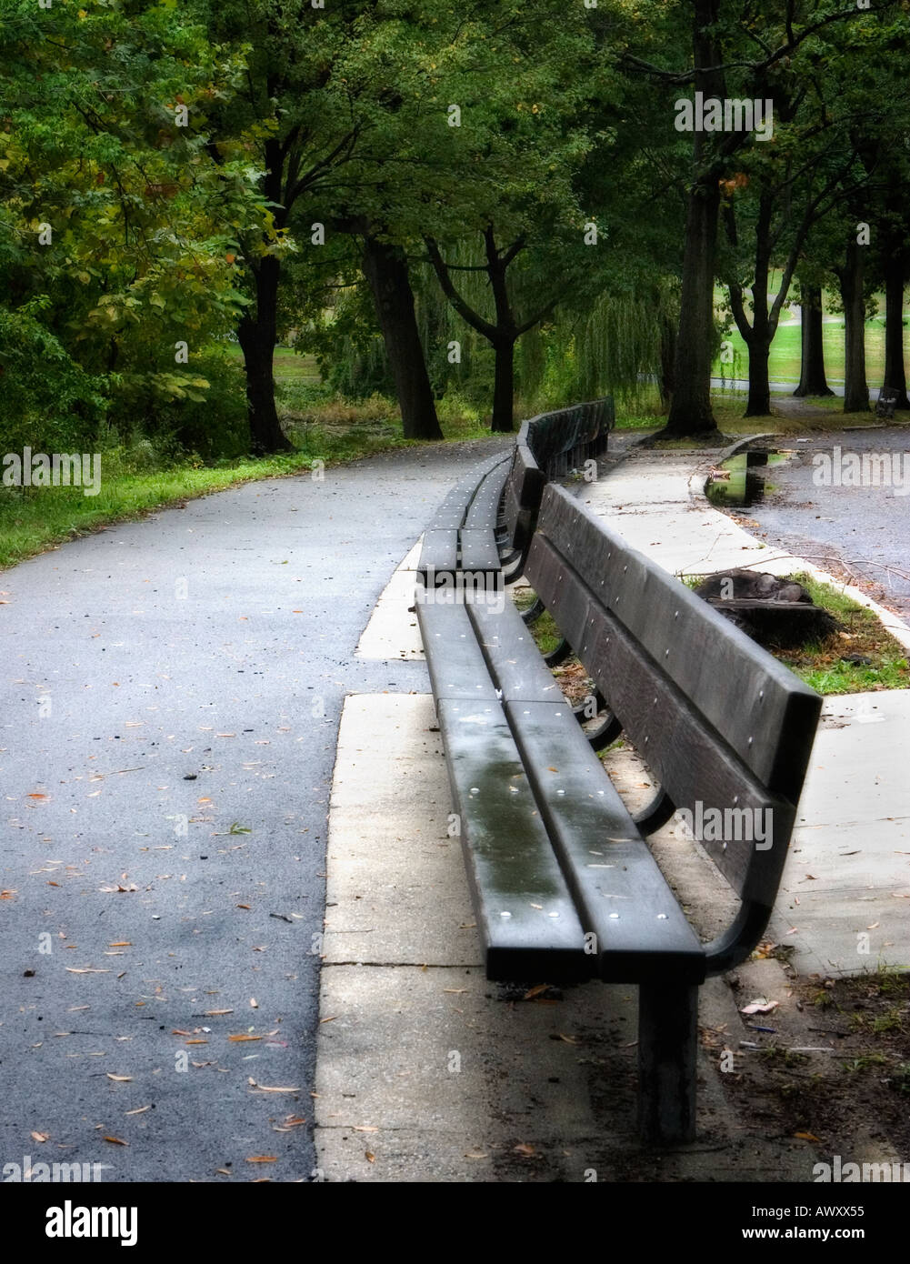 Central Park Bench On A Rainy Fall Day Stock Photo 17e42084 5970