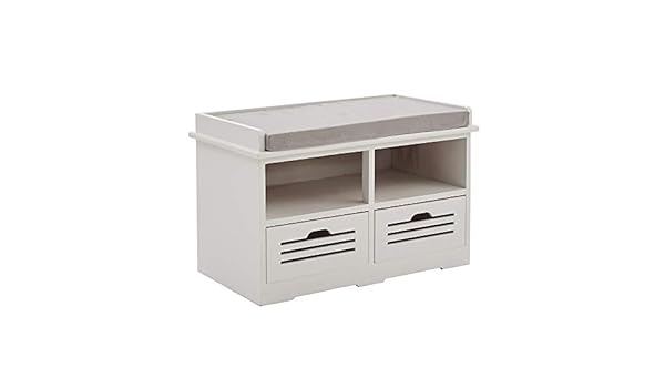 Pananastore Wooden Unit Storage Bench With Seat Cushion 2 Drawers