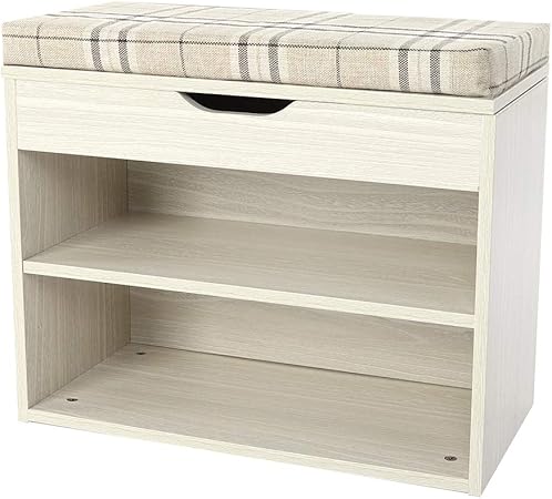 Sobuy Fsr35 W White Storage Bench With 2 Doors Removable Seat