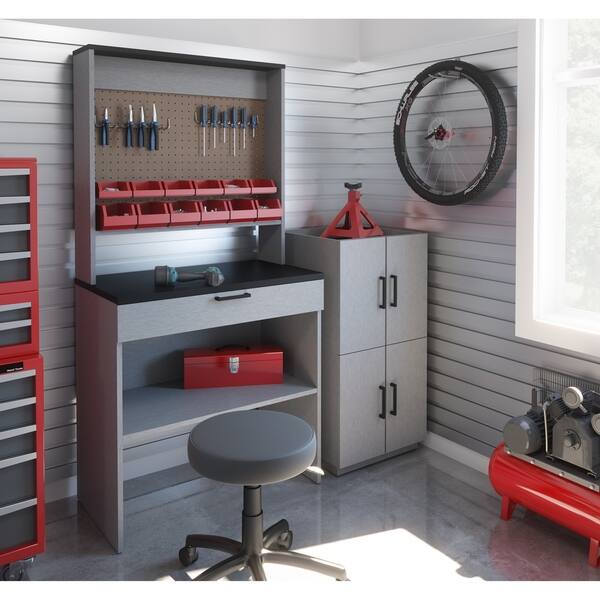 Shop Bestar Lincoln 4 Piece Workbench And 2 Stackable Cabinets Set