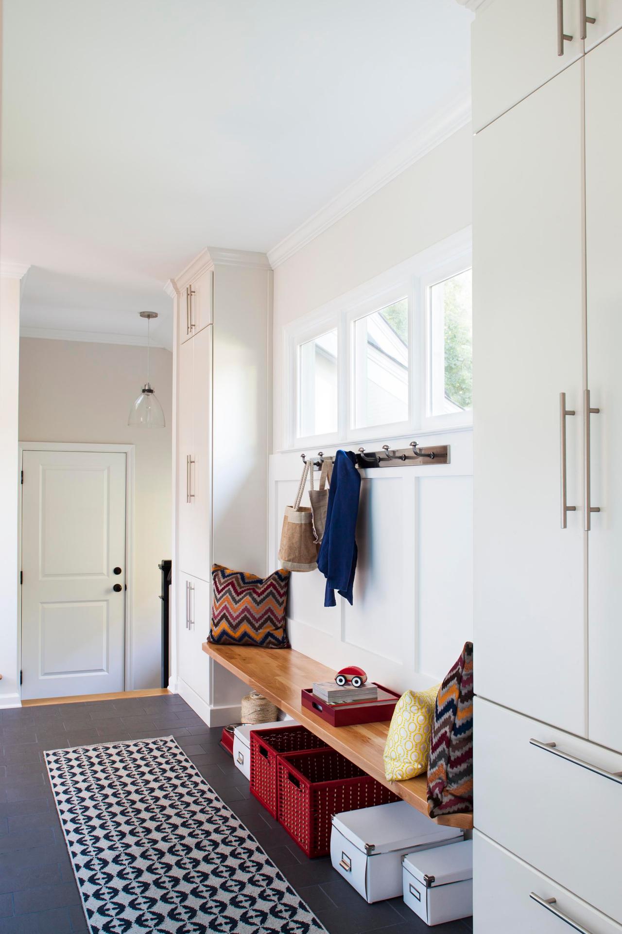 Long Contemporary Mudroom With Geometric Area Rug Hgtv