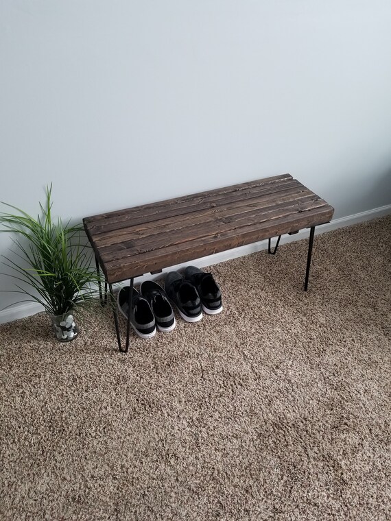 Reclaimed Wood Entryway Bench With Hairpin Legs Etsy
