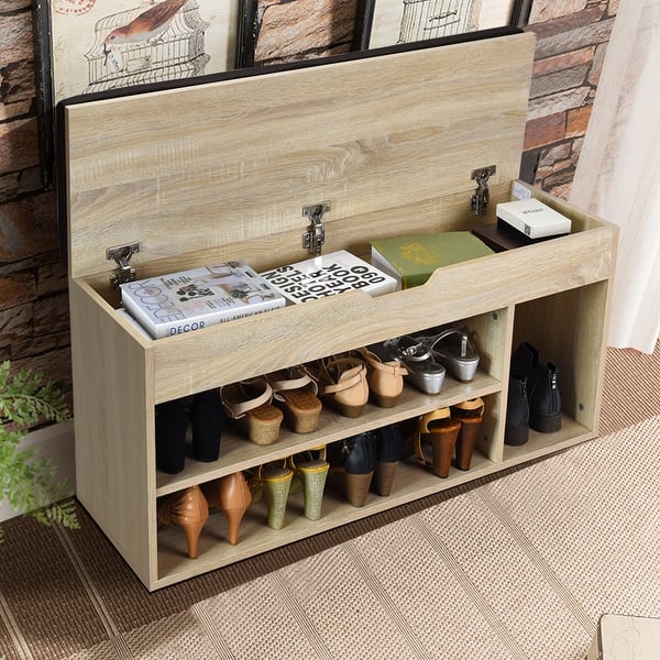 Shop Costway Wooden Rack Shoes Bench W Storage Shelf Upholstered