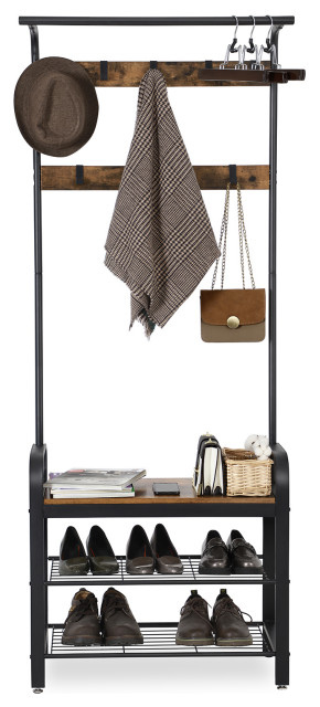 Industrial Hall Tree Coat Rack Shoe Bench Entryway Storage Shelf