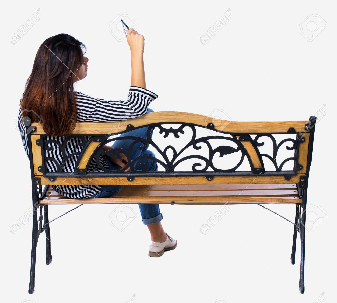 Woman Sitting On Bench With Back Turned Stock Photo Download