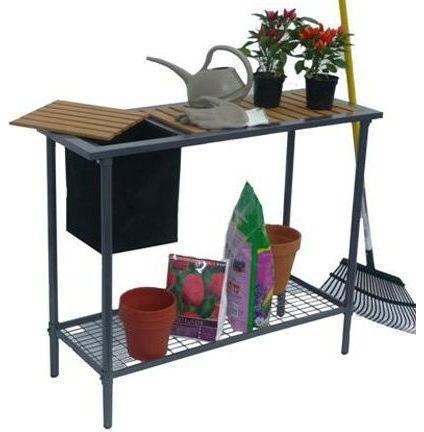 Outdoor Metal Garden Bench Work Table With Wood Top Industrial