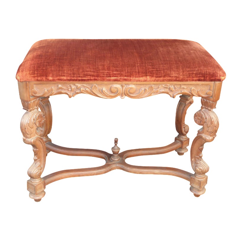 Antique French Country Ornate Carved Orange Velvet Bench Chairish