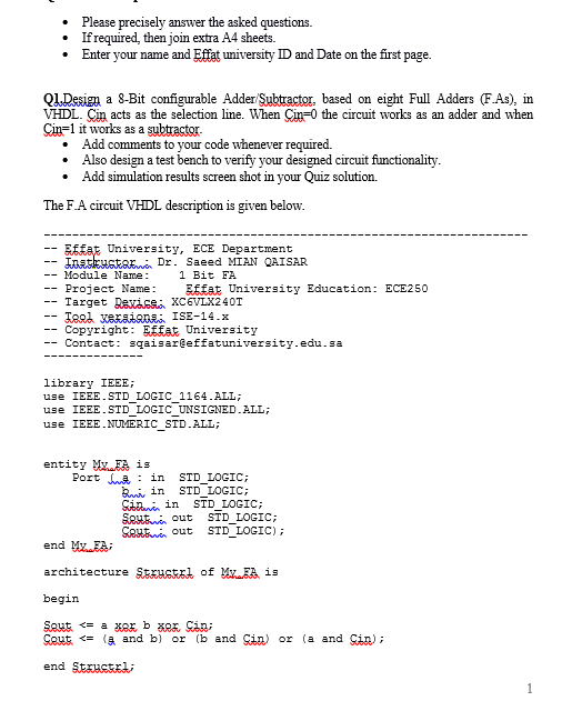4 Bit Ripple Adder Vhdl Code For Full