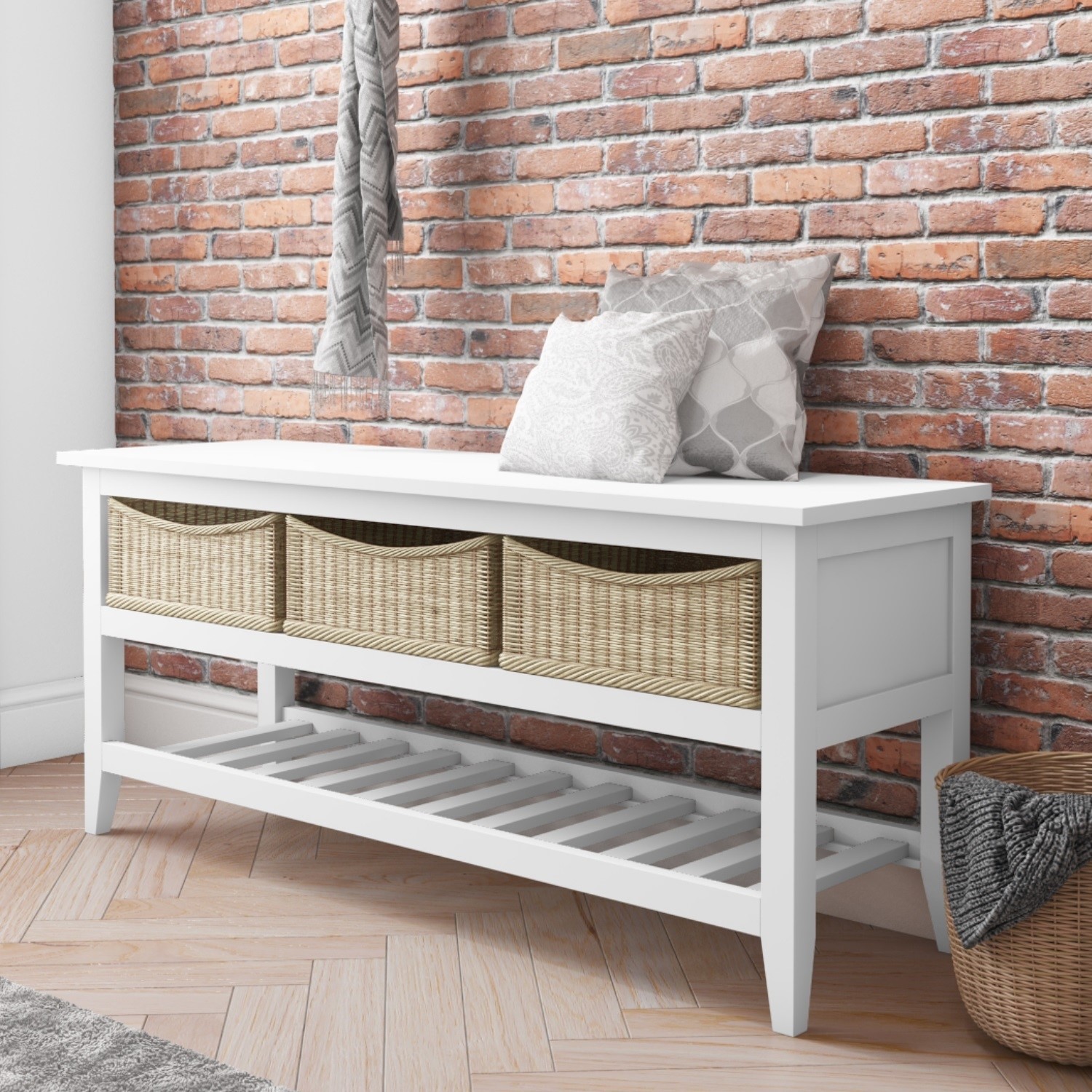 Elms Bench Shoe Rack With Seat Wicker Baskets In White