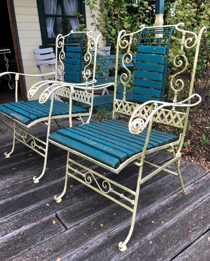 A Decorative 4 Pieces Iron Wood Garden Set 1940 1950 S Seats And