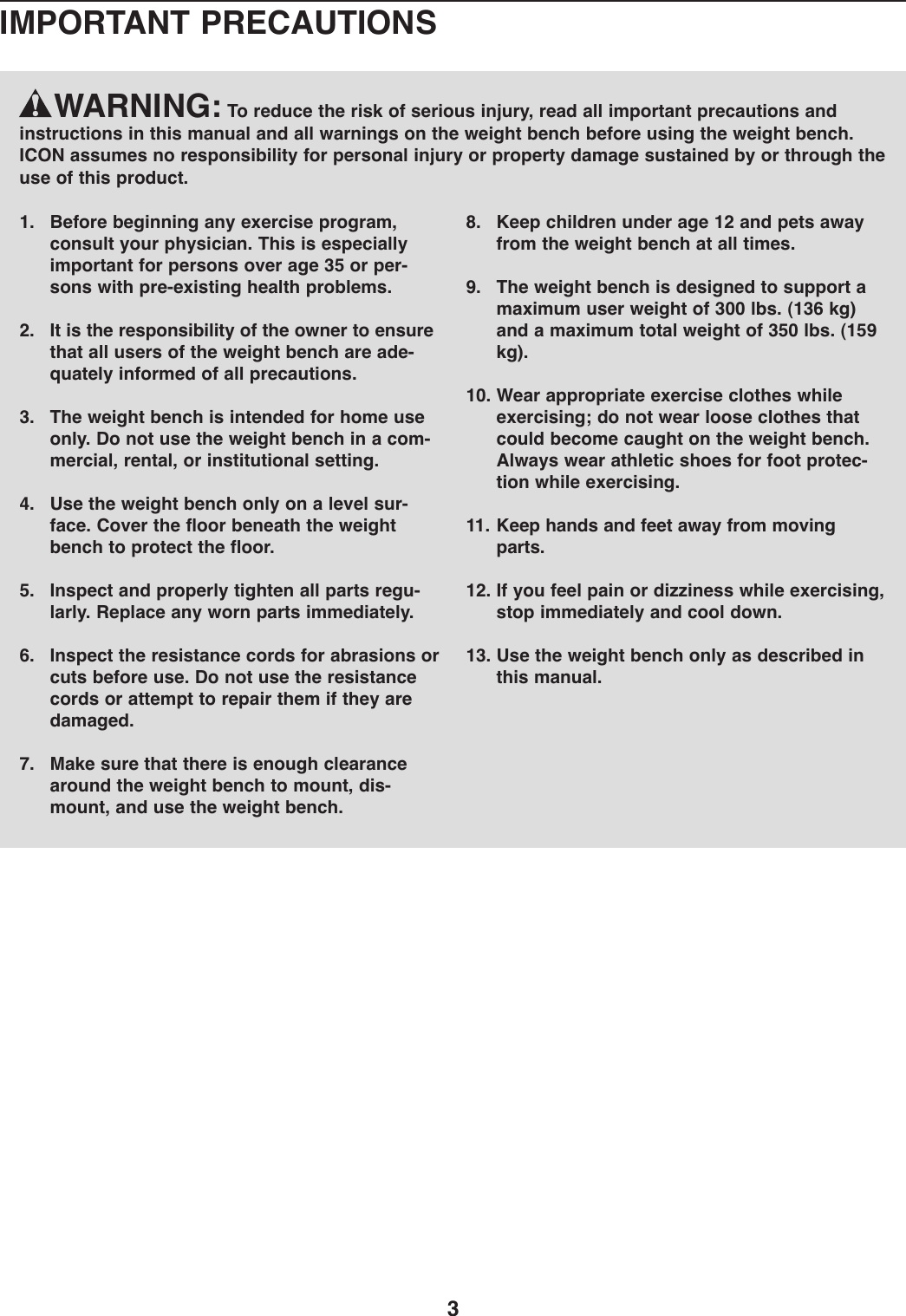 Before You Begin Gold S Gym Gb 1500 Ggbe19640 User Manual Page