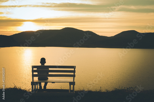 The Silhouette Of Boy Sitting Alone Concept Of Lonely Sad Alone