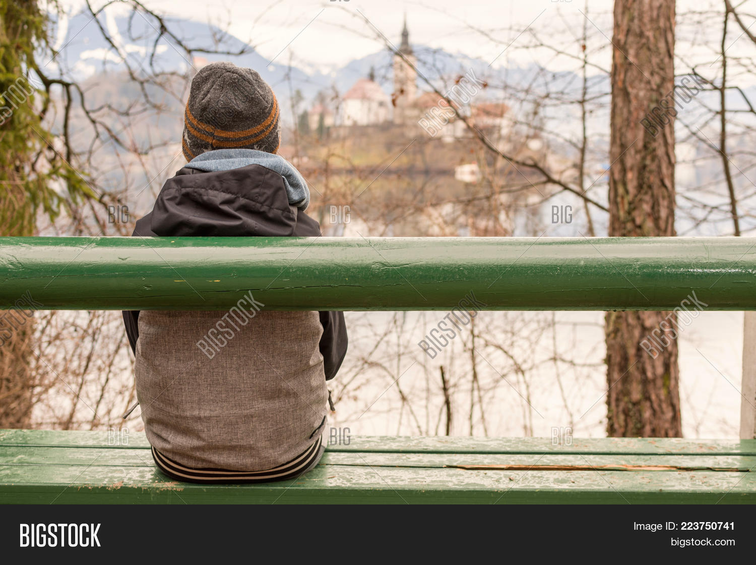 Boy Sitting On Bench Image Photo Free Trial Bigstock