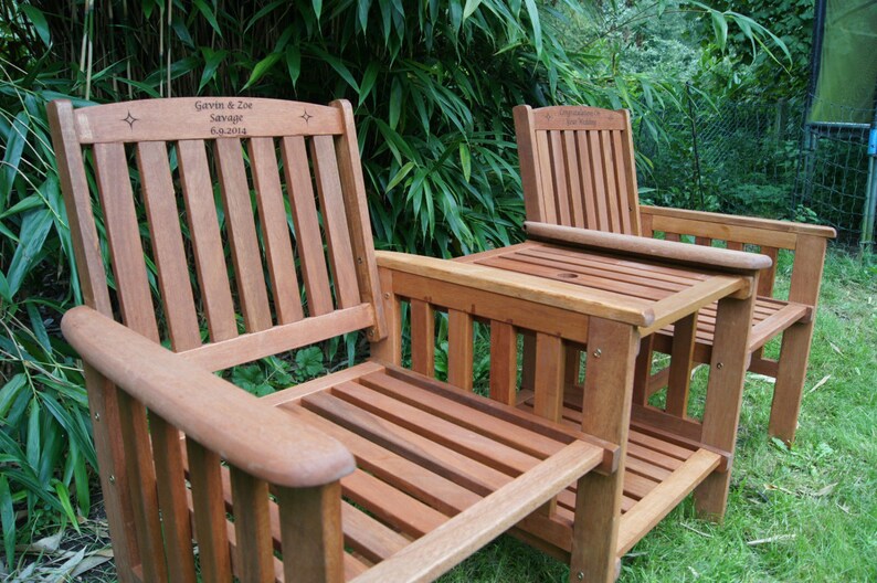Love Seat Teak Oiled Hardwood Personalised With Your Message Etsy
