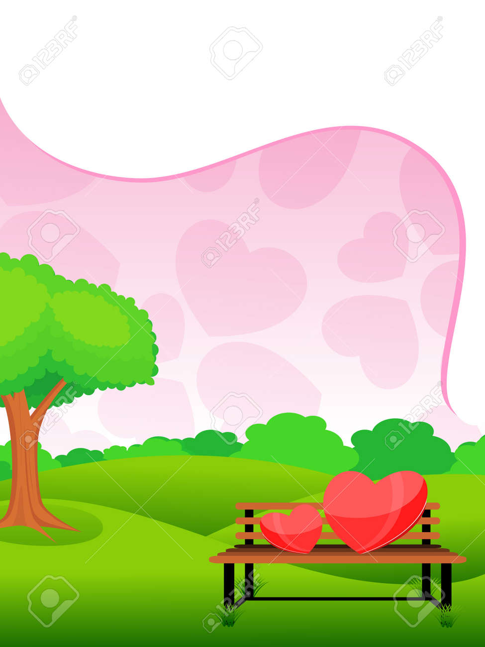 Garden Nature Background With Heart On Bench Vector Love Garden