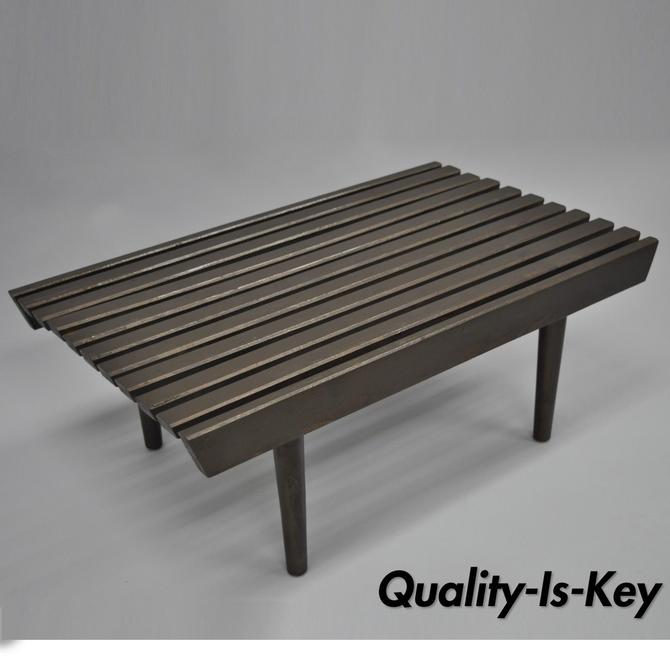 Mid Century Modern Slat Bench Coffee Table Walnut Etsy