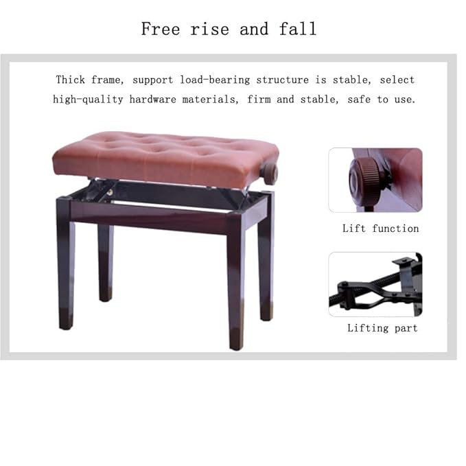Hbiao Adjustable Wooden Piano Stool Keyboard Seat Thick Pu Leather