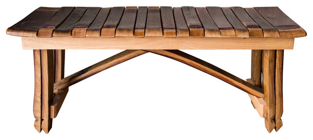 Wine Stave Bench With Cross Braces Rustic Accent And Storage