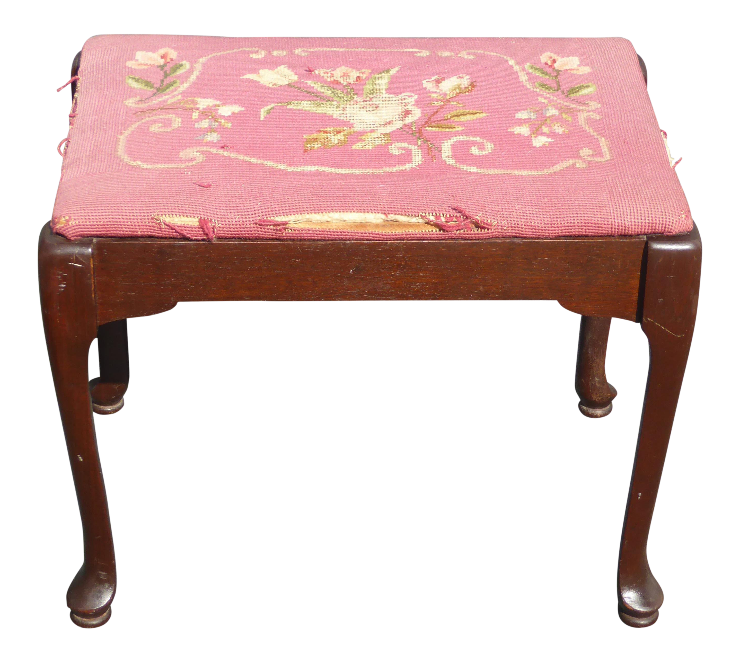 Vintage Rustic French Provincial Pink Needlepoint Bench Stool