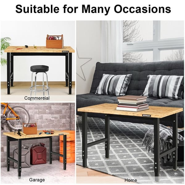 Shop Gymax Adjustable Height Workbench Bamboo Top Steel Frame