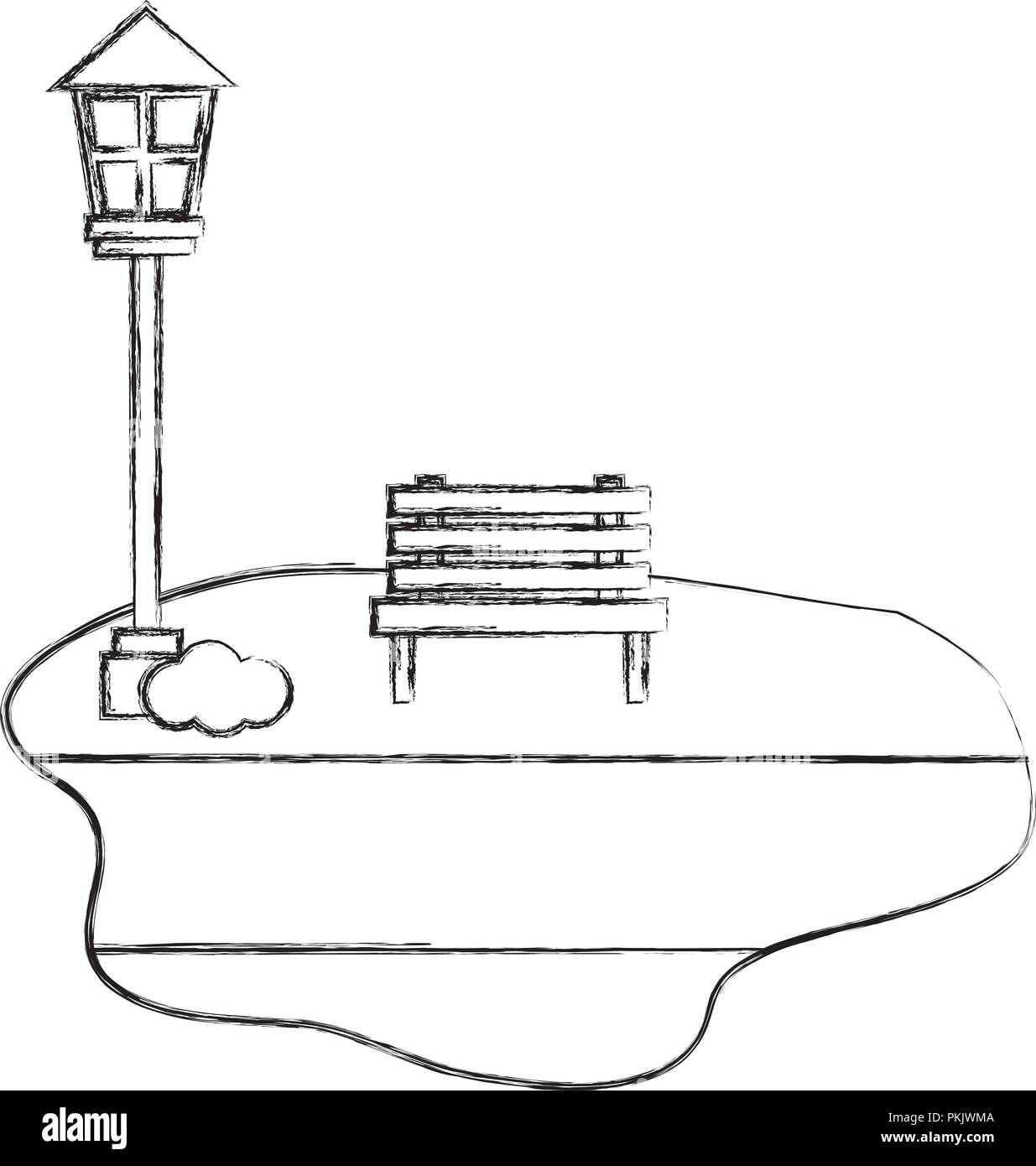 Bench Street Lantern Sketchy Style Stock Vector Royalty Free