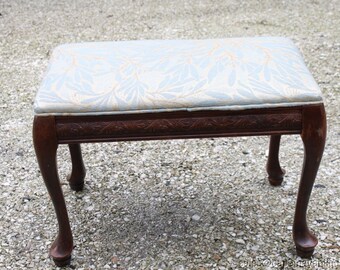 Antique Solid Wood Organ Piano Stool Bench Glass Ball Claw Feet