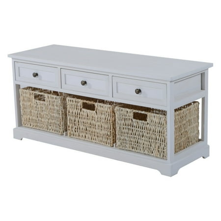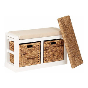 Traditional 2 Basket Storage Bench White Foam And Wicker Seat